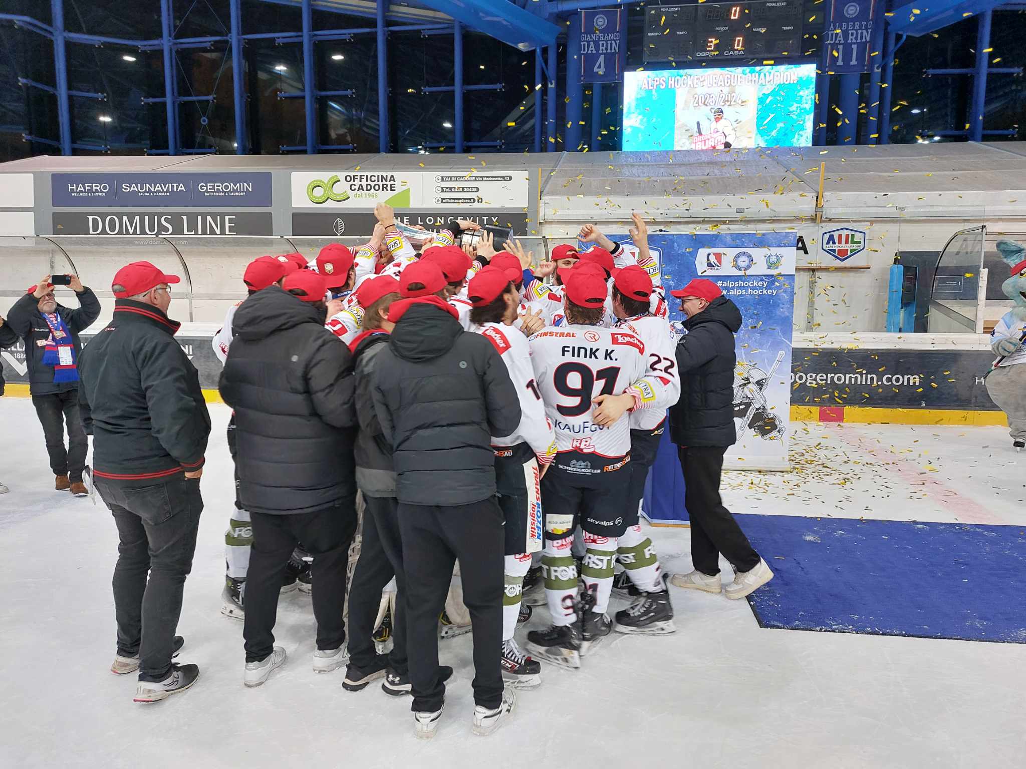Die Rittner Buam SkyAlps krönten sich am Donnerstagabend zum zweiten Mal in der Klubgeschichte zum Alps Hockey League-Champion. In Finale vier setzten sich die Südtiroler bei S.G. Cortina Hafro mit 3:0 durch, womit die „Buam“ die Finalserie mit 4:0-Siegen für sich entscheiden konnten. Es ist ihr erstes Championat seit der Premierensaison 2016/17. Für Cortina wiederum ist es die zweite Finalniederlage am Stück.