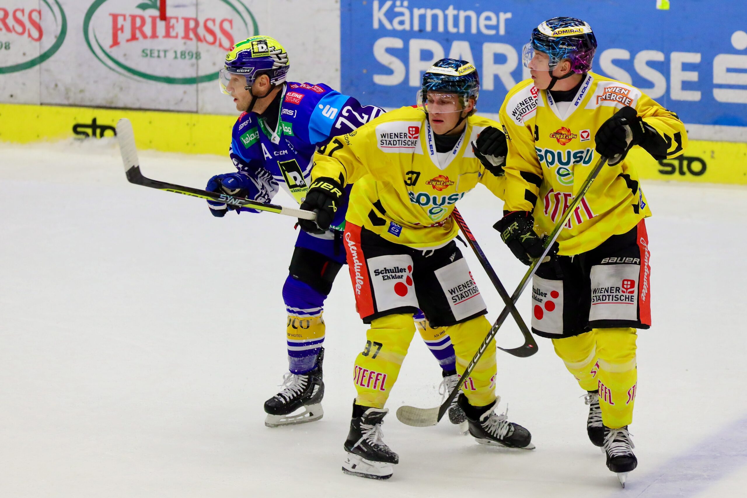 Die Premiere auf ORF Sport+ entschieden die spusu Vienna Capitals für sich. Obwohl der EC iDM Wärmepumpen VSV die ersten beiden Drittel kontrollierte, konnten sich die Adler keinen Vorsprung herausspielen, auch weil Caps-Goalie Tyler Parks mit zahlreichen Saves glänzte. Nach dem Führungstreffer der Villacher im Mitteldrittel gelang den Wienern wenig später in Unterzahl der Ausgleich. Im finalen Abschnitt übernahmen die Caps das Kommando und gingen durch den Liga-Premierentreffer von Brett Kemp in Führung. Die Wiener setzten sich schließlich mit 3:2 durch und feierten ihren ersten Saisonsieg. Die Villacher bleiben nach den ersten beiden Spielen in der win2day ICE Hockey League punktelos.