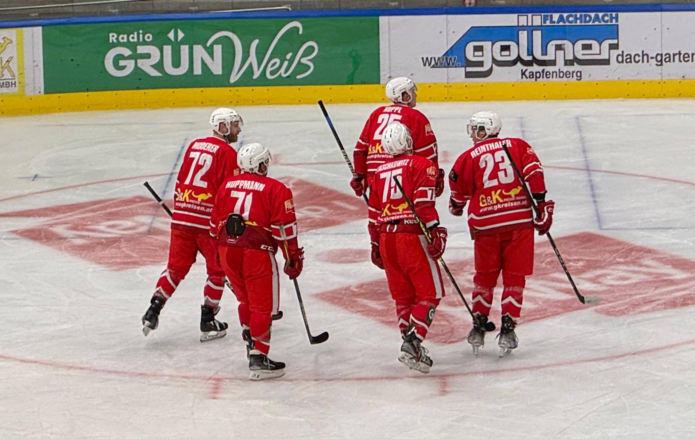 Torschützen Kapfenberger SV: Christoph Draschkowitz (07:52 Min., 13:56 Min./PP1), Manuel Trost (11:42 Min., 58:37 Min.), Lukas Draschkowitz (46:45 Min.), Florian Hoppl (47:08 Min.)
