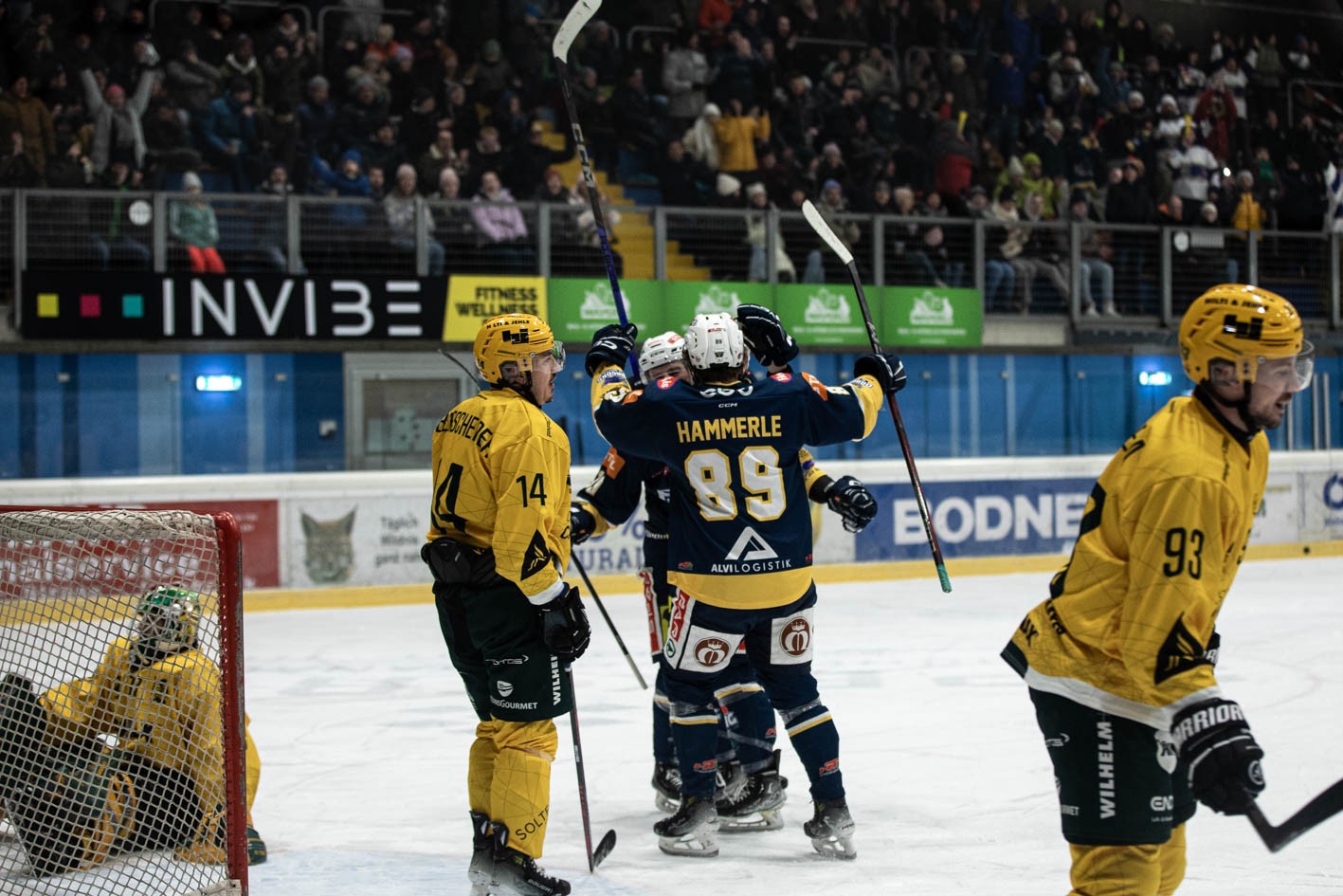 Wenig später schafften die Vorarlberger den Anschlusstreffer, Ricardo Bell überraschte Kufstein-Goalie Sprachmann mit einem Schuss zum 2:3 und machte den Schlager blitzartig wieder spannend (35.). Als Valentin Hammerle nach einem Angriff über die rechte Seite knieend zum 4:2 einnetzte, kochte die Kufstein Arena (45.).