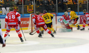 Nach einer knappen halben Stunde lag der EC iDM Wärmepumpen noch auf Erfolgskurs, am Ende jubelte der KAC über einen 5:3 Sieg...