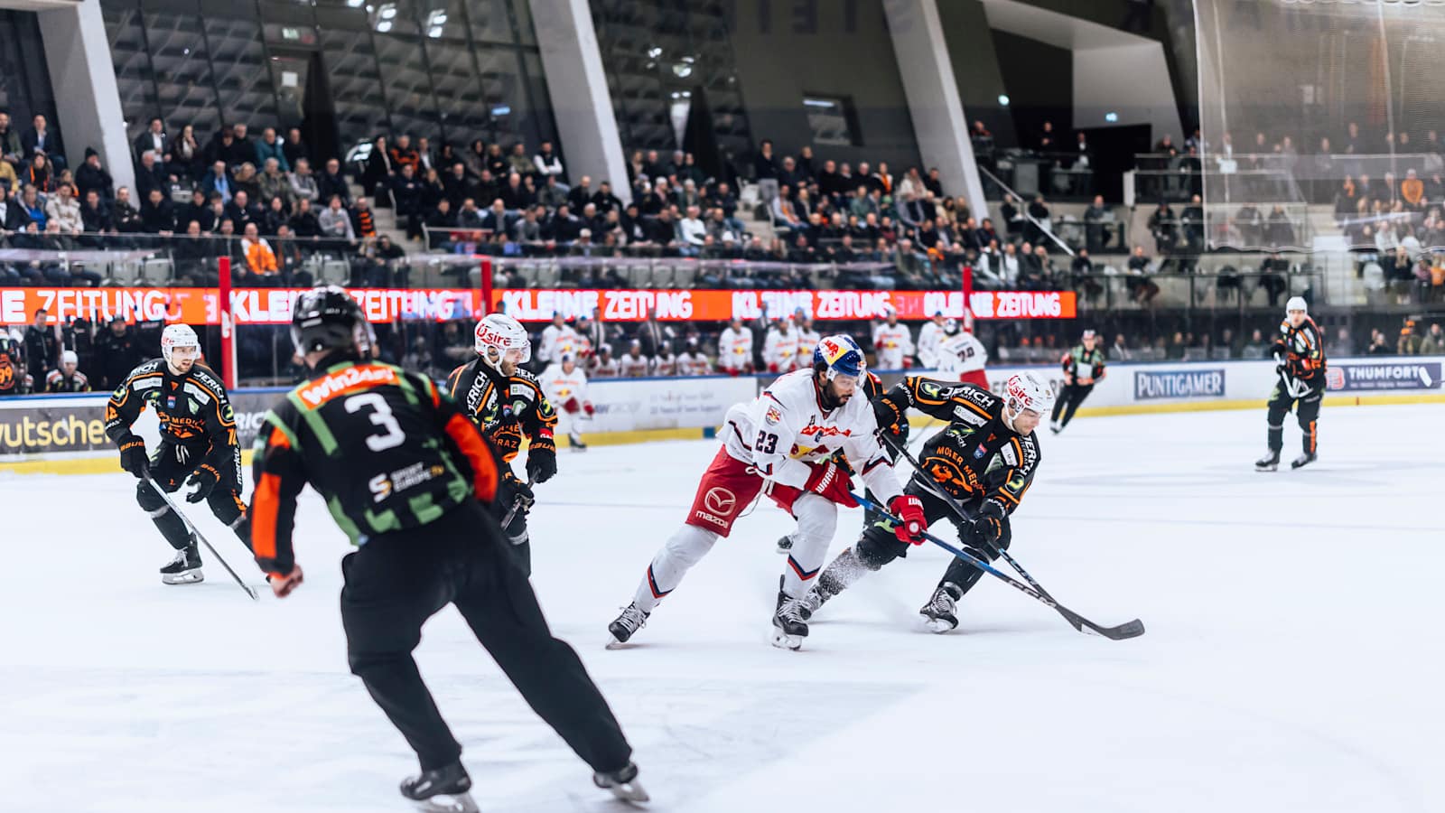 In einem hart umkämpften Match mit 22 Strafen, darunter vier Spieldauerdisziplinarstrafen, feierte der EC Red Bull Salzburg einen 4:2-Auswärtssieg bei den Moser Medical Graz99ers. Die Hausherren führten nach 40 Minuten noch 2:1, doch in den letzten 15 Minuten drehten die Gäste das Spiel. Travis St. Denis glich zum 2:2 aus, Florian Baltram erzielte in der 52. Minute den 3:2-Game-Winner, und St. Denis machte kurz vor Schluss per Empty-Netter mit seinem zweiten Treffer alles klar. Graz musste die erste Heimniederlage nach sechs Siegen in Folge hinnehmen. Im direkten Vergleich war es für Salzburg der zweite Sieg im vierten Saisonduell.