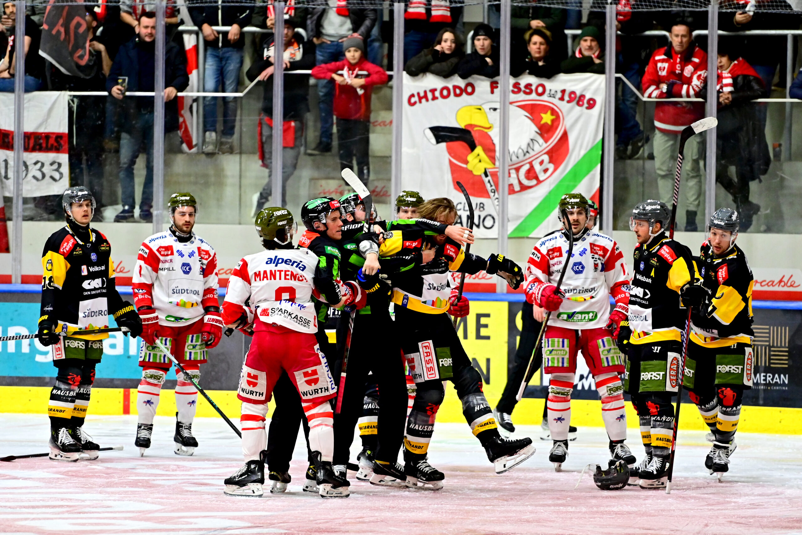 Die Wölfe aus Bruneck gingen bereits in der vierten Minute durch einen Treffer von Tommy Purdeller in Front, doch Luca Frigo sorgte nur drei Minuten später für den Ausgleich. Den erneuten Führungstreffer der Pustertaler folgte erneut der Ausgleich – die Partie wurde erst in der Overtime entschieden. Dort war es Mikael Frycklund, der danach seinen Emotionen freien Lauf lies und, so berichtete es sportnews.bz, seinen Torerfolg etwas provokant vor der Bozener Bank feierte. Danach folgte etwas, was man in der win2day ICE Hockey League nicht allzu oft sieht…